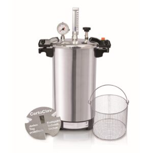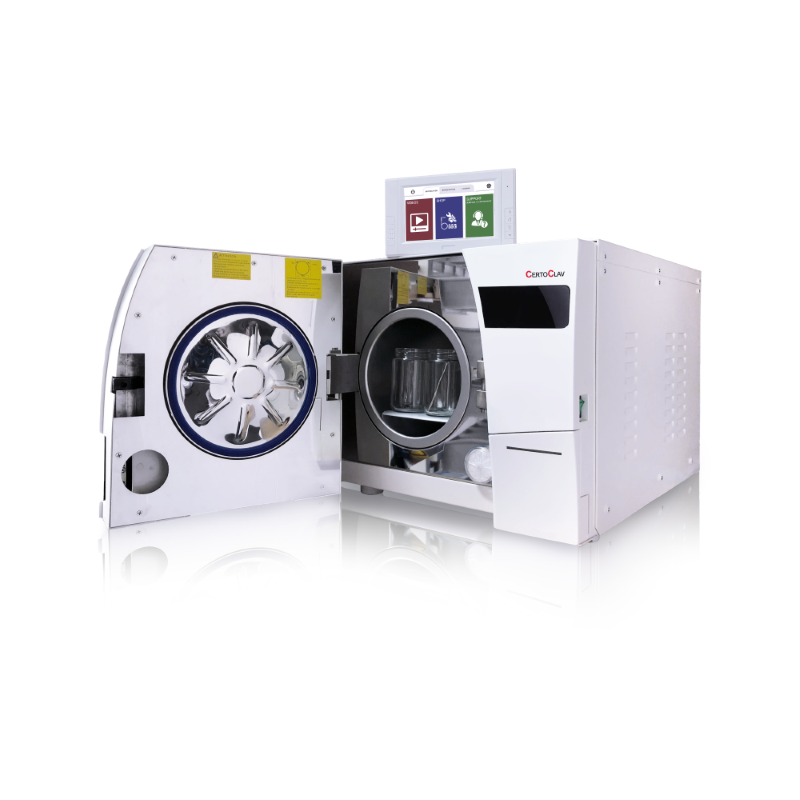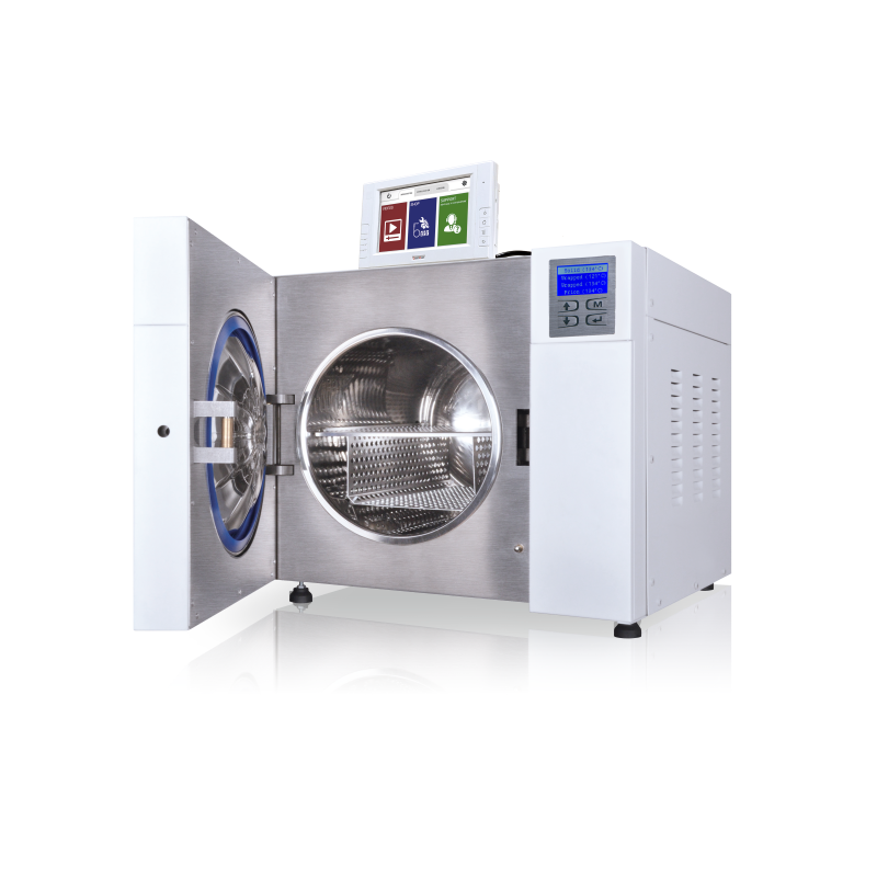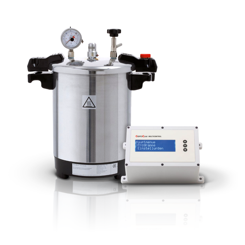 Sterilization of liquids and any kind of solid bodies. With flexible media temperature sensor and vacuum pump. Touch screen, WiFi, LAN, USB. Also suitable for material tests with automatic repeated cycles.